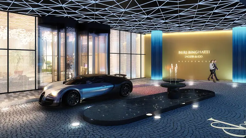 Here comes the highest residential tower, Burj Binghatti at Business Bay, Dubai presenting luxury 2 & 3 bedroom Suites & Penthouses developed by Binghatti Developers. This one of a kind diamond-shaped at the peak of the tower reminiscent of an actual crown designed by Jacob & Co, which will have more than 112-storey and provide residents an iconic way of life.